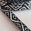 Czarno biała taśma żakardowa z etnicznym azteckim wzorem. Tasiemka dekoracyjna o szerokości: 10mm.