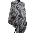 Damski i męski szal dwustronny w subtelnych biało-czarnych kolorach i motywem liści ze 100% wełny z merynosów australijskich. Gatunek Premium.