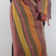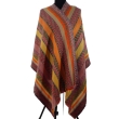 Wielokolorowy damsko męski dwustronny szal w paski i jodełka w jesiennych barwach: czerwony, pomarańcz, beżowy, zielony, khaki, brązowy itd