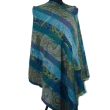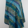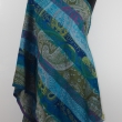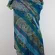 Damski dwustronny szal w odcieniach turkusu, khaki, niebieskiego wraz ze wzorami Praisley ze 100% wełny z merynosów australijskich. Gatunek Premium.