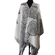 Damski lub męski dwustronny szal ze 100% wełny z merynosów australijskich, kolory beżowy i subtelny czarny. Gatunek Premium.