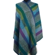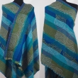 Dwustronny szal w odcieniach turkusu, khaki, niebieskiego ze 100% wełny z merynosów australijskich. Gatunek Premium.