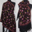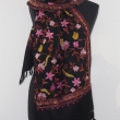 Czarny haftowany szal w kwiaty i frędzlami ze 100% wełny z merynosów australijskich. Gatunek Premium.
