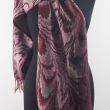 Damski dwustronny szal wielokolorowy we wzory Ikat z 100% wełny z merynosów australijskich. Gatunek Premium. Odcieni: bordowy, fioletu, różu i brązu.