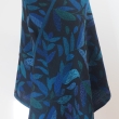 Elegancki granatowy damski szal w liście z wełny z merynosów