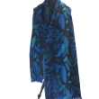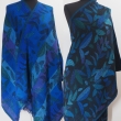 Ciemno granatowy szal dwustronny w liście ze 100% wełny z merynosów australijskich. Gatunek Premium.