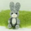 Uroczy królik szaro-biały z ruchomymi łapkami została wykonany z wysokogatunkowej owczej wełny z merynosów z Nowej Zelandii. Ręcznie robione techniką suchego filcowania za pomocą igły.