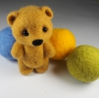 Uroczy miś z ruchomymi łapkami został wykonany z wysokogatunkowej owczej wełny z merynosów z Nowej Zelandii. Ręcznie robione techniką suchego filcowania za pomocą igły.