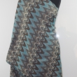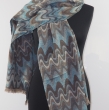 Damski dwustronny szal niebieski zygzaki ze 100% wełny z merynosów australijskich. Gatunek Premium.
