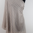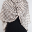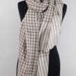 Elegancki beżowo jasno brązowy szal dwustronny unisex z wełny merynosów i jedwabiu w kratę. Gatunek Premium.