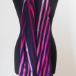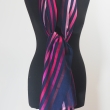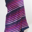 Bardzo elegancki dwustronny szal z wełny merynosów, połączony z jedwabiem. Szal w kolorze granatowy doskonale współgra z barwnymi paskami w różnych odcieniach: od jasno, ciemnego różu do bordowego. Włókna jedwabne nadają delikatności i lekkości o naturalnym połysku. Wełna daje przyjemne odczucie ciepła. Nowoczesny dizajn powoduje, iż przeznaczony tak dla Pań jak i dla Panów. Doskonale nada się na cieplejsze i zimniejsze jesienne-zimowe i wiosenne dni.
