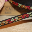 Czarna tasiemka żakardowa z etnicznym wzorem (haft w kolorze czerwonym, musztardowym i limonkowym). Taśma dekoracyjna o szerokości: ok. 12mm.