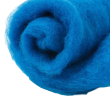 Wełna zgrzebna w błamie z merynosów nowozelandzkich, kolor morski, grubość 27 μm. Kardaczos/кардачес