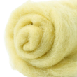 Wełna zgrzebna w błamie z merynosów nowozelandzkich (Кардочес новозеландский) kolor słomkowożółty. Merino o grubości włókna ok. 27 μ.