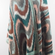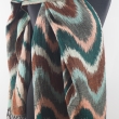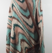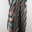 Damski dwustronny szal wielokolorowy w odcieniach zieleni we wzory Ikat z 100% wełny z merynosów australijskich. Gatunek Premium. Odcieni: bordowy, fioletu, różu i brązu.