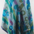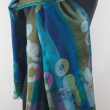 Damski dwustronny szal w odcieniach turkusu, khaki, niebieskiego ze 100% wełny z merynosów australijskich. Gatunek Premium.