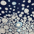 Damski lub męski dwustronny szal ze 100% wełny z merynosów australijskich, kolory multi-kolorowy granatowe elipsy i kulki. Gatunek Premium.