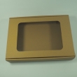 Beżowe eko pudełko opakowanie kraft box z przezroczystym okienkiem w rozmiarze 200x200x70mm.