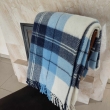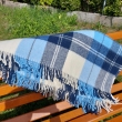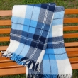 Duży klasyczny niebiesko-granatowy wełniany pled narzuta koc w kratę ze szlachetnej wełny merynosów Nowozelandzkiej, Rozmiar: 170x210 cm