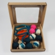 Kolorowe kuleczki z drewnianymi koralikami nadają effektowny wygląd. Przeznaczona jest dla kobiet kochające rękodzieło i nietużinkowe ozdoby. Jest oryginalnym dodatkiem do garderoby. Unikalna biżuteria może być wyjątkowym prezentem dla bliskiej osoby.