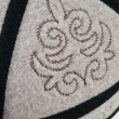 Czapka została uszyta z ręcznie filcowanej wełny merynosów. W wewnętrznej jego części jest wszyta podszewka z bawełny.