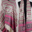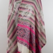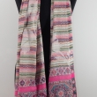 Kremowo różowy szal dwustronny w kolorowe paski i wzory azteckie ze 100% wełny z merynosów australijskich. Gatunek Premium.