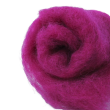 Wełna zgrzebna w błamie z merynosów nowozelandzkich, kolor fuksji, grubość 27 μm. Kardaczos/кардачес