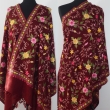 Bordowy damski wieczorowy szal wełniany wyszywany w kolorowe kwiaty. Gatunek Premium. 100% wełny z merynosów australijskich