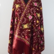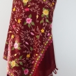 Damski bordowy wełniany szal merino z haftem w kwiaty
