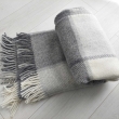 Wełniany pled narzuta koc z wełny merynos 140x205 cm SZARA KRATA