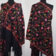 Elegancki i piękny szal ze 100% wełny merynosów najwyższego gatunku z przepięknym haftem w kwiaty z bawełnianych i jedwabnych nici.